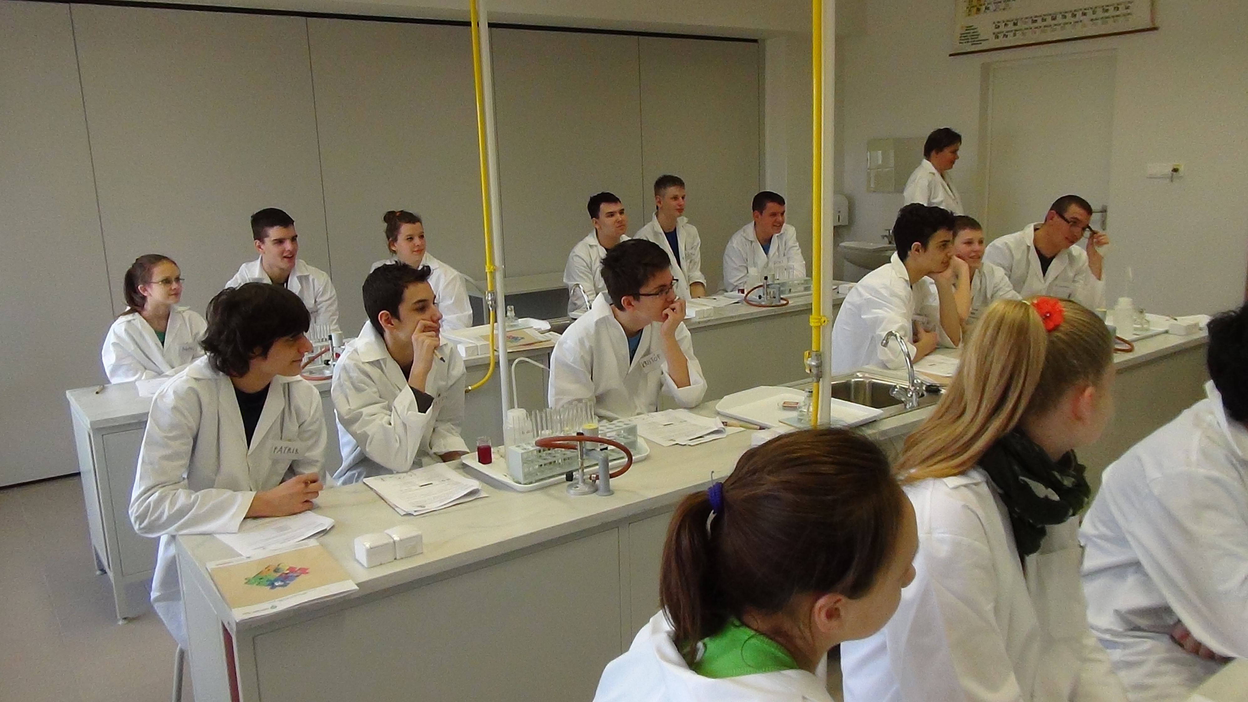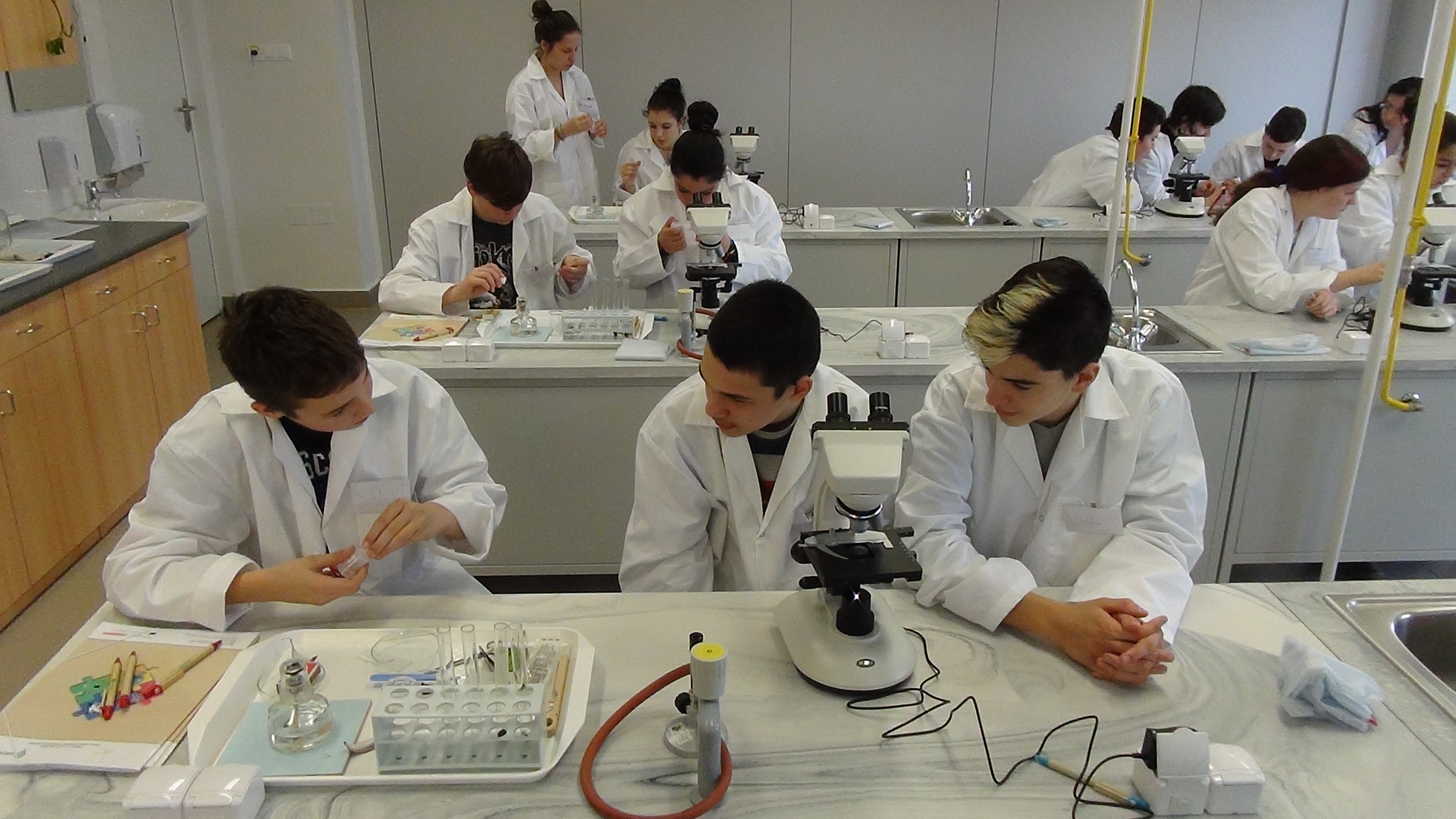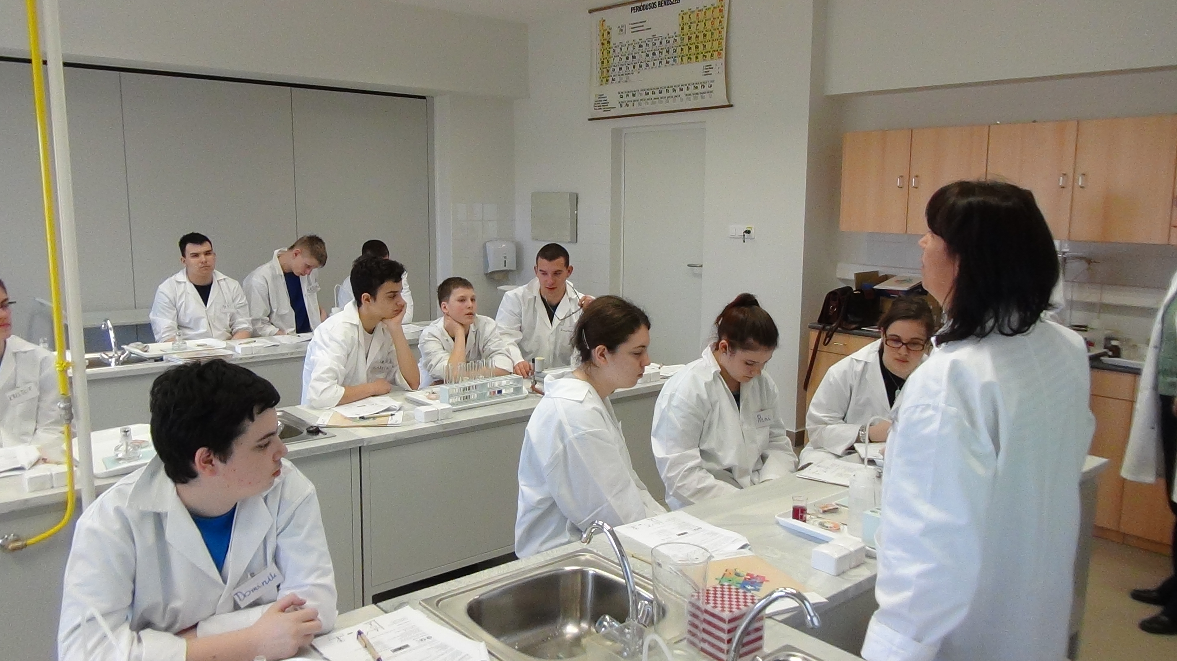 Ma a Hódmezővásárhelyi Varga Tamás Általános Iskola két nyolcadik osztálya látogatott a laborba. Az órákon 36 tanuló és 3 kísérőtanár vett részt. A labornap témájának címe „Víz, víz, tiszta víz”.